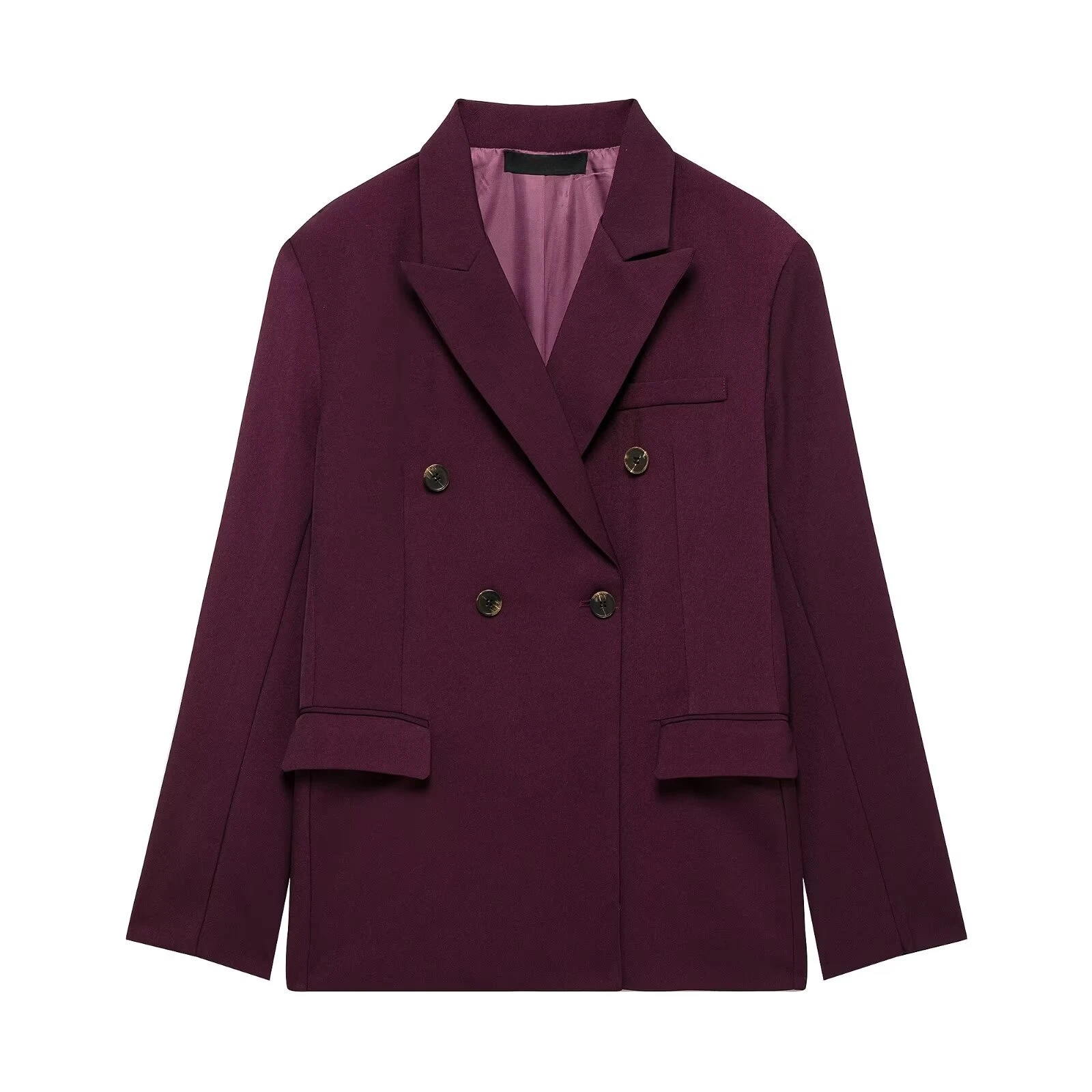 2025 Spring Lady Outfits Elegant Office Lapel Double Breasted Full Sleeve Blazers Loose Pants Women's Burgundy Suits Female Sets